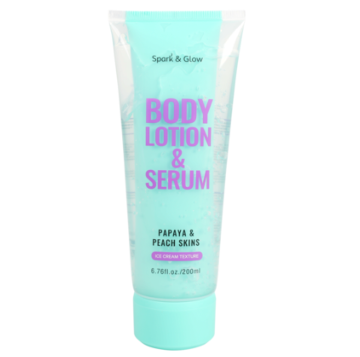 Spark&Glow имеет очень необычную формулу из питательного лосьона и освежающей гель-сыворотки для тела 2в1, которые смешиваются при нанесении для идеального результата. Питание и увлажнение в одном флаконе! Экстракты папайи и персика, богатые витаминами и антиоксидантами, питают и помогают предотвращать сухость, делая кожу мягкой и сияющей. Крем имеет нежный приятный тропический аромат, который заряжает энергией и поднимает настроение.