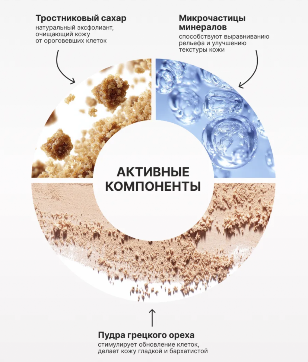 Скраб для лица в пирамидках от популярного корейского бренда Consly бережно удаляет ороговевшие клетки эпидермиса, очищает поры от избытка себума и выравнивает рельеф кожи. Микрочастицы минералов в сочетании с тростниковым сахаром бережно «шлифуют» кожу. Пудра грецкого ореха стимулирует её естественное обновление, благодаря чему кожа становится нежной и бархатистой.