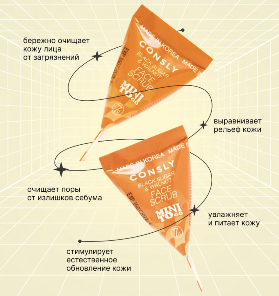 Купить Consly Скраб для лица с черным сахаром и грецким орехом (пирамидка), Mini To Go Black Sugar & Walnut Face Scrub в интернет-магазине корейской косметики UNBOXSHOP
