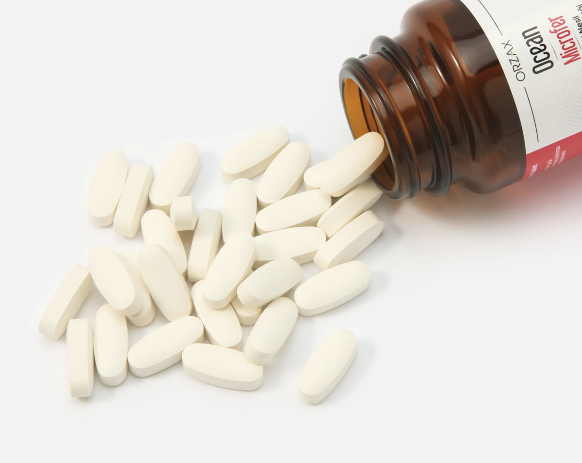 Биодобавка Ocean Microfer выпускается в таблетированной форме, удобной для приема. Она рассчитана только на взрослых, т.к. имеет повышенную дозировку железа в составе. В каждой таблетке содержится 17 мг этого микроэлемента, а в упаковке — 30 таблеток. Этого хватит на курс поддерживающей терапии на 1 месяц, т.к. принимать пищевую добавку рекомендуется по 1 таблетке в день. При этом нет ограничений на сочетании с приемом пищи или временем суток — Ocean Microfer можно принимать как натощак, так и на полный желудок.