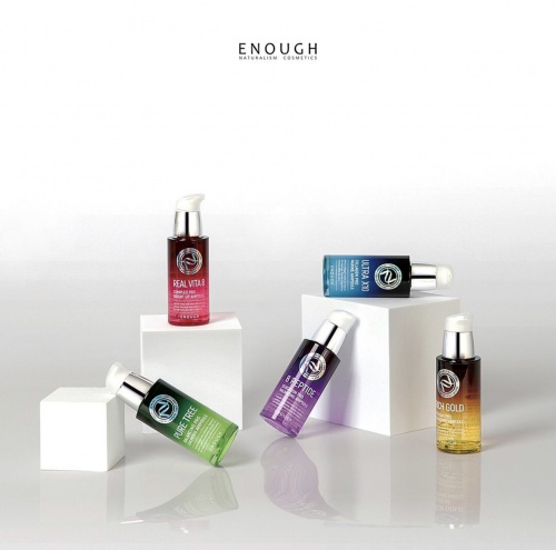 Ампульная сыворотка от бренда Enough восстанавливает кожный гидролипидный баланс, омолаживает, разглаживает морщинки, увлажняет, укрепляет, защищает от преждевременного старения и внешних факторов. У средства очень приятная гелевая и не липкая текстура, что позволяет максимально комфортно использовать средство.