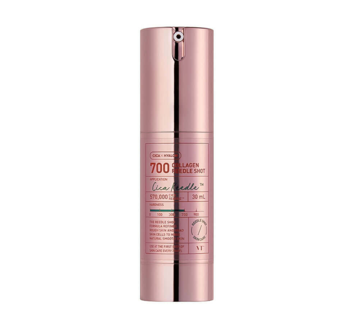 VT Cosmetics Collagen Reedle Shot 700 придаёт упругость, эластичность и плотность, делает кожу гладкой и сияющей, уменьшает видимость возрастных изменений. Продукт не только запускает процесс обновления клеток, разглаживая текстуру, но и усиливает действие последующих средств по уходу. Подавляет воспаление и покраснение, поддерживает чистоту пор. Содержит микроиглы Cica Reedle™, которые транспортируют активные ингредиенты глубоко в кожу, ускоряя эффект от применения средства.