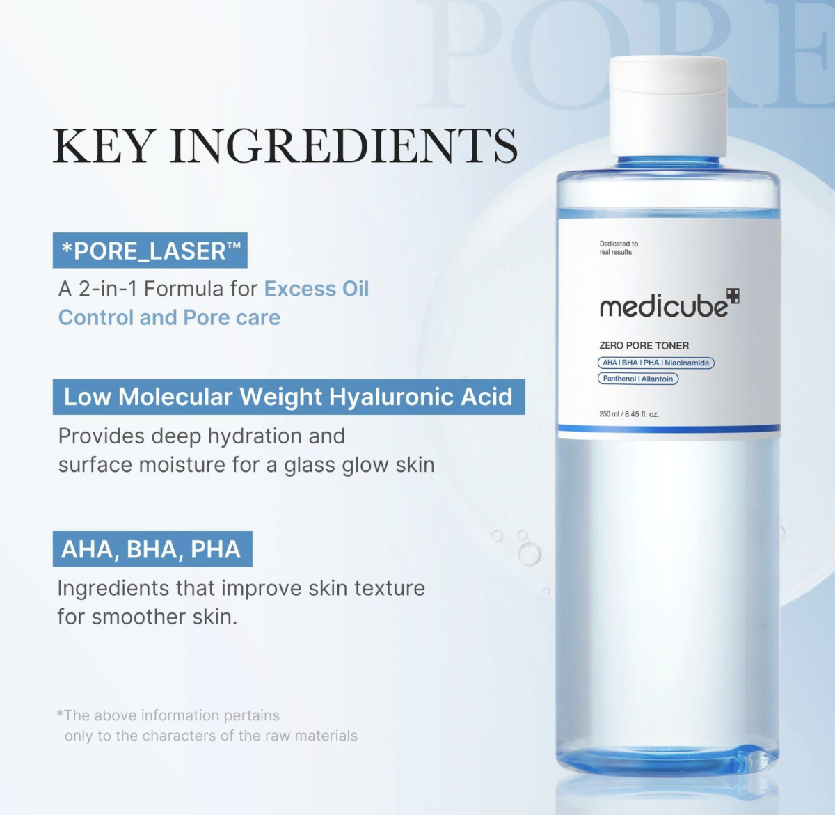 - Запатентованный комплекс Pore Laser™ на основе экстрактов коры белой ивы, баклажана и гамамелиса. Он глубоко очищает и сужает расширенные поры, нормализует выработку себума и выравнивает микрорельеф. Успокаивает раздражение и улучшает состояние проблемной кожи.