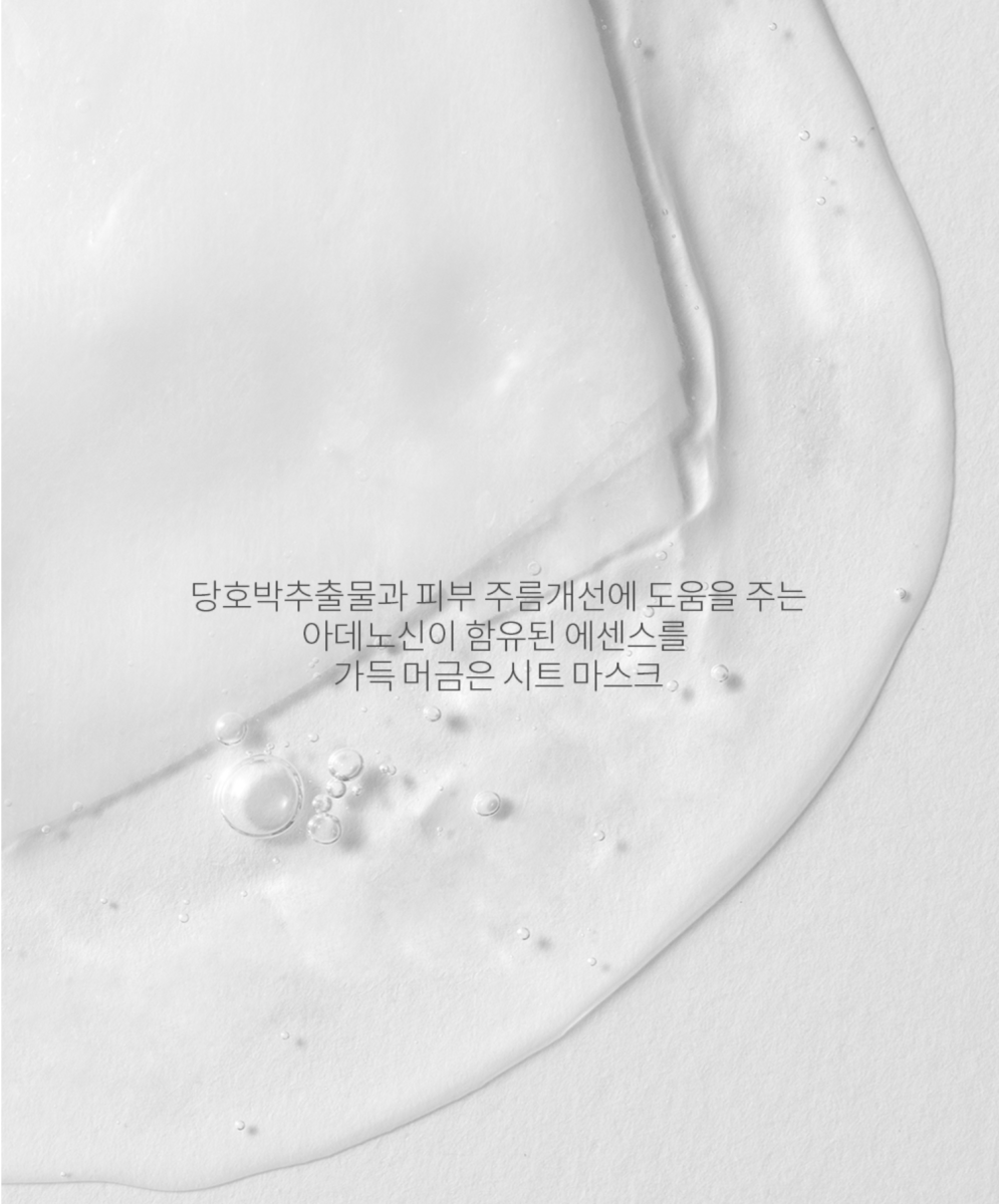 В состав эссенции, которой пропитана маска, входят: растительный глицерин, полисахарид грибов тремелла, гиалуроновая кислота, аллантоин, аденозин, натуральный экстракт хауттюйнии и др. Такой комплекс увлажняет и удерживает влагу, улучшает общее состояние кожи, делает её более упругой и эластичной, заживляет и восстанавливает.